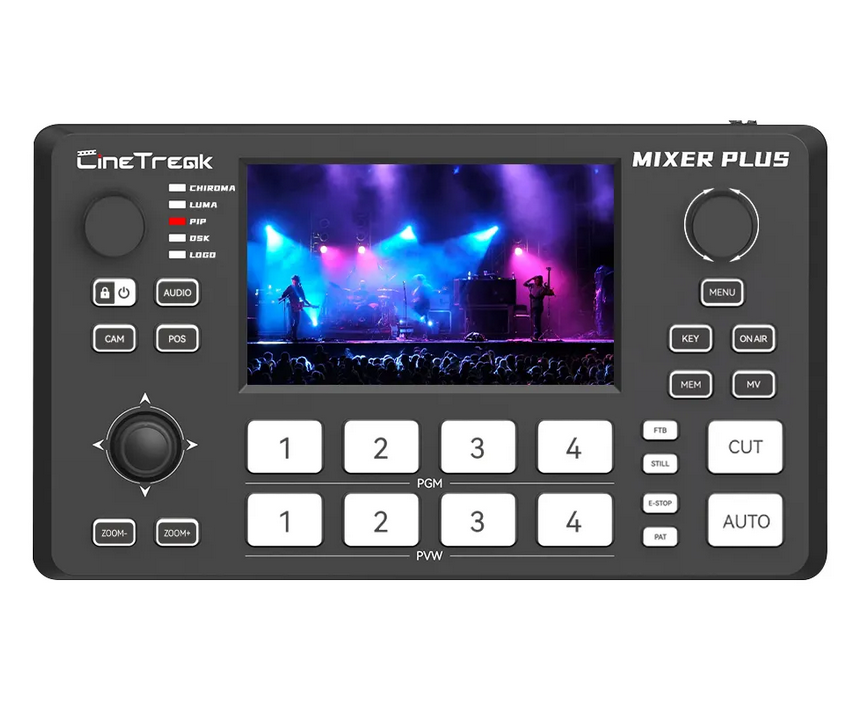 Mixer Plus ist ein leistungsstarker und kompakter Videoumschalter, der für Live-Streaming, Event-Produktionen und Multi-Kamera-Übertragungen entwickelt wurde. Er ist in zwei Versionen erhältlich, um unterschiedlichen Workflow-Anforderungen gerecht zu werden: Mixer Plus mit vier HDMI-Eingängen und Mixer Plus SDI mit vier SDI-Eingängen für broadcasttaugliche Signal-Kompatibilität. Beide Modelle unterstützen nahtloses Mehrkanal-Umschalten, einen anpassbaren AUX-Ausgang und Multi-View-Monitoring in Echtzeit. Mit bis zu 30 integrierten Übergangseffekten – darunter Mix und DIP – können Benutzer professionelle Szenenwechsel mit einstellbarer Dauer erstellen. Die Audioflexibilität wird durch zwei Mikrofoneingänge und eine Kopfhörer-Monitoring-Buchse gewährleistet, die eine Echtzeit-Tonsteuerung ermöglichen. Der Switcher unterstützt auch die PTZ-Kamerasteuerung über VISCA over IP, sodass bis zu vier Kameras mit mehreren Voreinstellungen pro Gerät angeschlossen werden können. Zu den weiteren Produktionswerkzeugen gehören Chroma Key, Luma Key, Bild-in-Bild (PIP), Downstream Keying (DSK) und Logo-Overlays. Ausgestattet mit einer USB 3.0 UVC-Schnittstelle für unkomprimiertes HD-Streaming und einem USB 2.0-Anschluss zum Importieren von Mediendateien wie Logos und Hintergründen bieten Mixer Plus und Mixer Plus SDI eine komplette, vielseitige Switching-Lösung, die speziell auf professionelle Content-Ersteller und Live-Produktionsteams zugeschnitten ist.