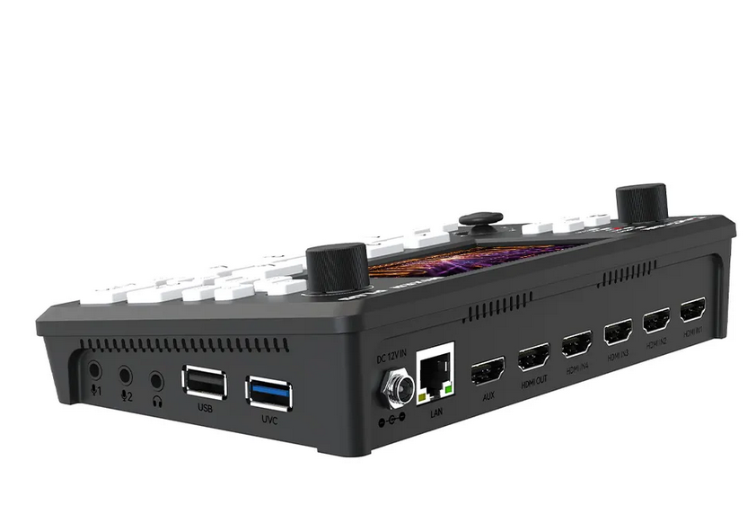 Flexibilität durch mehrere Eingänge – Mixer Plus ist ein kompakter und voll ausgestatteter Videoumschalter, der sowohl in einer HDMI- als auch in einer SDI-Eingangsversion erhältlich ist und speziell für die Anforderungen professioneller Live-Produktionsumgebungen entwickelt wurde. Die HDMI-Version verfügt über vier HDMI-Eingänge, während das SDI-Modell vier SDI-Eingänge bietet. Beide Versionen unterstützen die Umschaltung hochwertiger Videosignale. Jedes Gerät verfügt über einen Programm-Ausgang (PGM) und einen AUX-Ausgang. Der AUX-Ausgang unterstützt Multi-View-Vorschauen sowie anpassbare Videosignalausgänge und bietet so außergewöhnliche Flexibilität bei Live-Übertragungen. Beide Versionen sind mit einem LAN-Anschluss ausgestattet, über den PTZ-Kameras gesteuert oder eine Verbindung zu unserer offiziellen Steuerungssoftware auf dem PC hergestellt werden kann, wodurch der volle Zugriff auf die Funktionen des Geräts ermöglicht wird. Zu den zusätzlichen Audiofunktionen gehören zwei Line-In-Audioeingänge und ein Kopfhörerausgang für die Audioüberwachung in Echtzeit. Der integrierte USB 2.0-Anschluss ermöglicht den einfachen Import von Mediendateien wie Logos, Hintergründen und Standbildern, während der Hochgeschwindigkeits-USB 3.0-Anschluss als UVC-Schnittstelle fungiert und die unkomprimierte HD-Videoaufnahme direkt in OBS und andere Live-Streaming-Software ermöglicht. Unabhängig davon, ob Sie HDMI- oder SDI-Workflows bevorzugen, bietet Mixer Plus eine zuverlässige, flexible und benutzerfreundliche Lösung für die Live-Produktion mit mehreren Kameras.