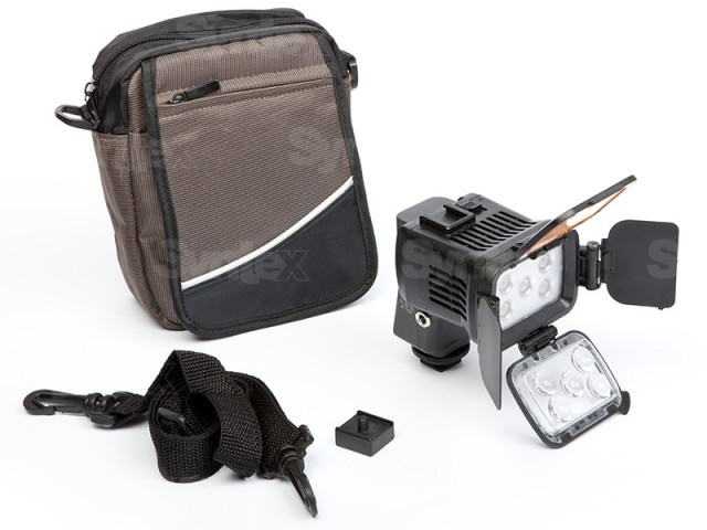 Die CONST ST-LBPV900 hat verstellbare Klappen sowie einen Diffusor, um das Licht weicher und diffuser zu machen (für weichere Schatten) oder umgekehrt, um es in einen geraden Lichtkegel für Aufnahmen aus größerer Entfernung zu bündeln. Die Leuchte kann an der Kamera befestigt werden und wiegt 270 g.