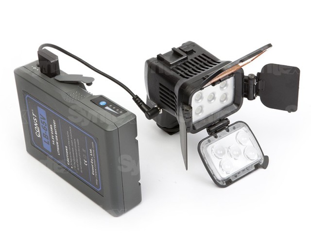 CONST ST-LBPV900 ist eine kompakte LED-Kameraleuchte mit einstellbarer Lichtleistung (2 Stufen - 400Lux/1m und 900Lux/1m). Die Farbtemperatur des Lichts ist einstellbar dank eines Farbfilters. Die Leuchte hat eine Batterieplatte für Panasonic VBG6/260 Batterien.