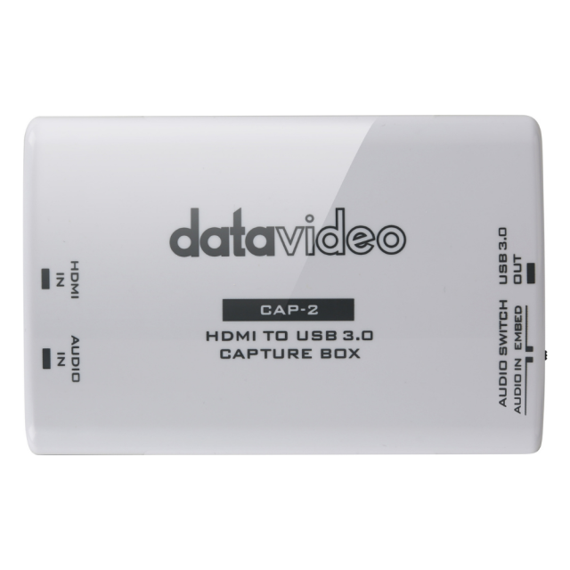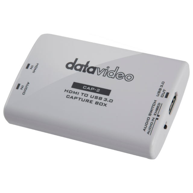 Datavideo CAP-2 ist ein HDMI > USB 3.0 UVC-Gerät für die Aufnahme oder das Streaming von Videos mit bis zu 1080p50/60 von HDMI-Geräten auf Windows-, Linux- und macOS-Computern mit einer der unterstützten Anwendungen/Dienste (OBS, VLC, Skype, etc.). Sie bietet Unterstützung für eingebettete und externe Audiosignale und eine vollständige Plug-and-Play-Installation.