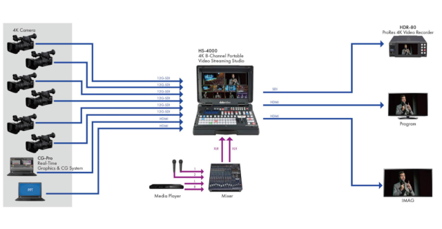 Der SE-4000 ist ein Live-Produktionsmischer mit 8 Eingängen, der eine echte 4K60/50p-Videoauflösung