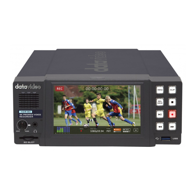 Der Datavideo HDR-80 Recorder kann bis zu vier 3G SDI Videosignale oder ein 4K/UHD Signal über HDMI oder 12G SDI aufzeichnen. Es verfügt über Streo-XLR-Eingänge und -Ausgänge, sowohl Gen-Lock- als auch Timecode-Eingänge und -Ausgänge, ist über DVIP/GPI/RS-2332 steuerbar, die Aufzeichnung wird auf 2 SSDs gespeichert, und das Gerät kann auch als Player dienen.