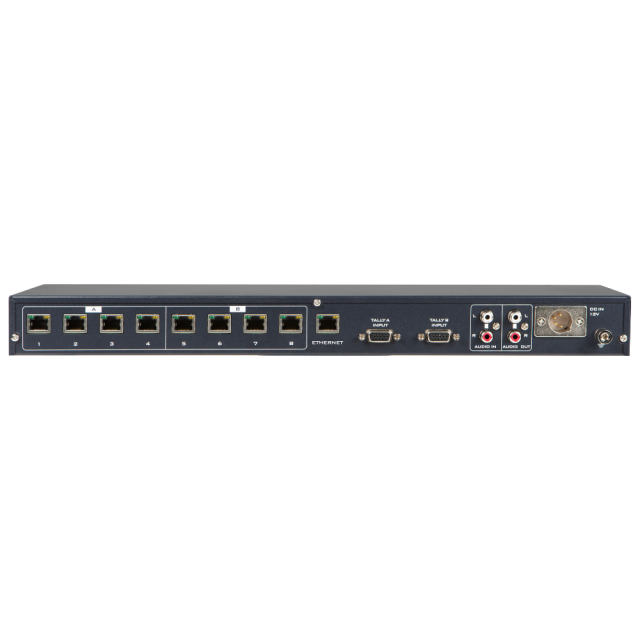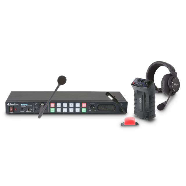 Das Datavideo ITC-300 ist ein 8-kanaliges kabelgebundenes Kommunikationssystem mit Power over Ethernet für 8 Belt Packs. Der Videoregisseur kann wählen, ob er mit einem einzelnen Kanal oder mit allen Kanälen gleichzeitig sprechen möchte.