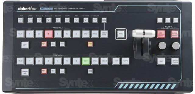 Die RMC-260 ist eine kostengünstige Hardware-Fernbedienungskonsole für den digitalen Video-Switcher SE-1200MU. Es wird über eine RS-232-Schnittstelle angeschlossen und dient als Alternative zum standardmäßig mitgelieferten Software-Panel. Klassische Overhead-Steuerung, übersichtliche Tastenanordnung