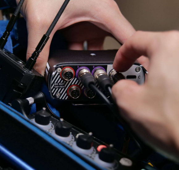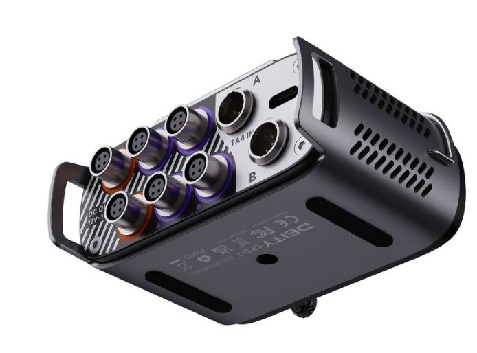 Ein integriertes 1,1-Zoll-Farbdisplay liefert klare Telemetriedaten und Echtzeit-Batterieinformationen, sodass Benutzer den Stromstatus überwachen, Batteriewechsel planen und unerwartete Abschaltungen vermeiden können. Der Verteiler verfügt über sechs Hirose-Ausgänge zur gleichzeitigen Stromversorgung mehrerer Audiogeräte sowie einen USB-A-Anschluss an der Vorderseite zum Laden kleiner Elektronikgeräte. Zusätzliche TA4- und USB-C-Eingänge bieten maximale Vielseitigkeit.