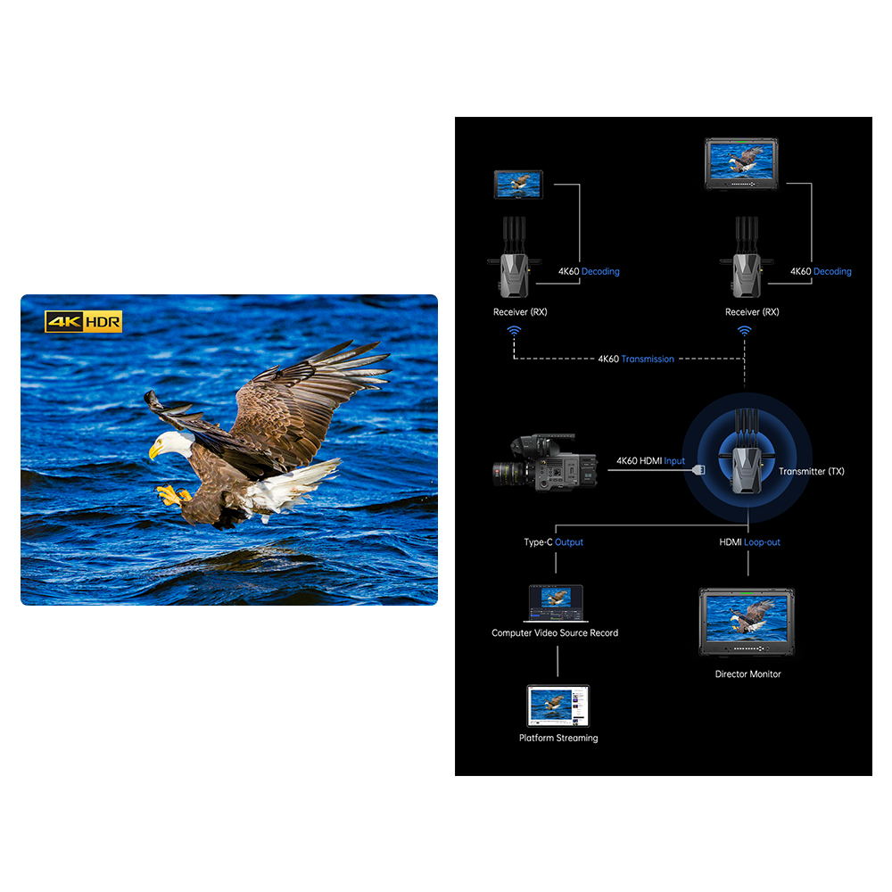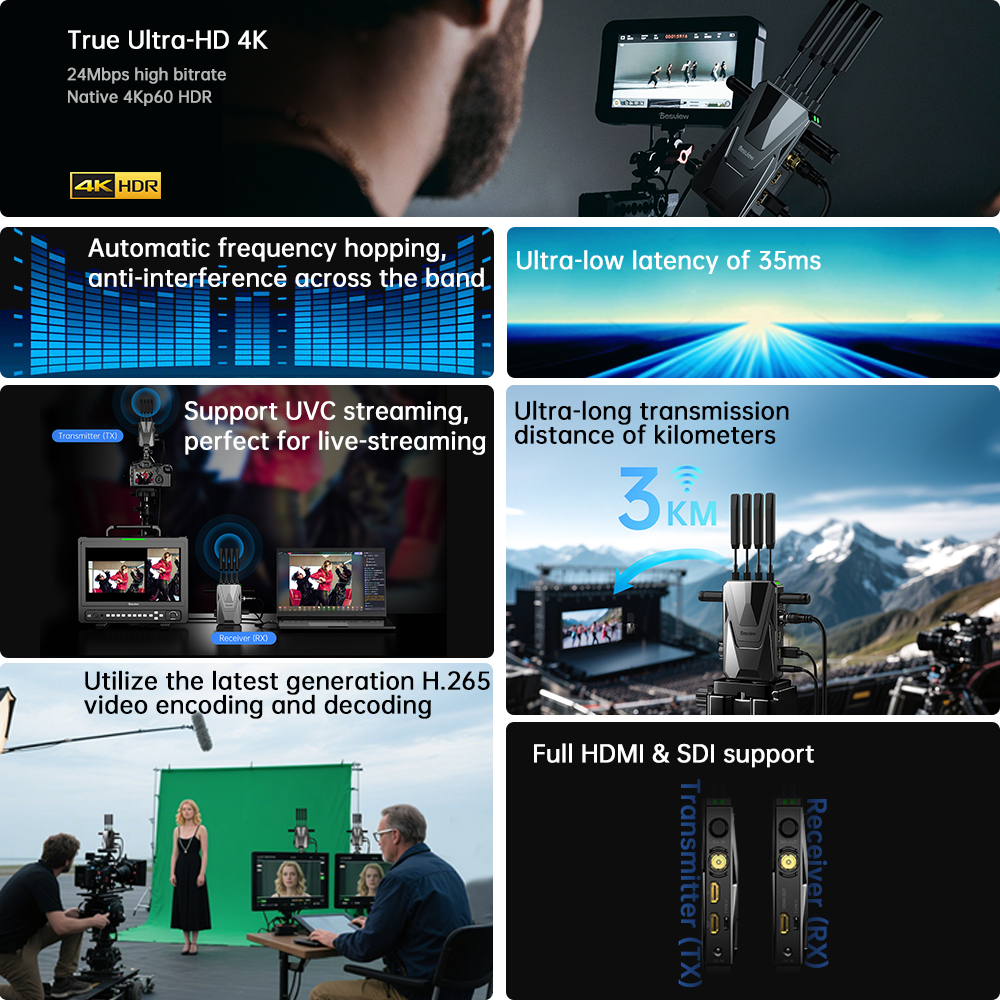 Echte Ultra-HD 4K Automatisches Frequenzspringen, Interferenzschutz über das gesamte Band |