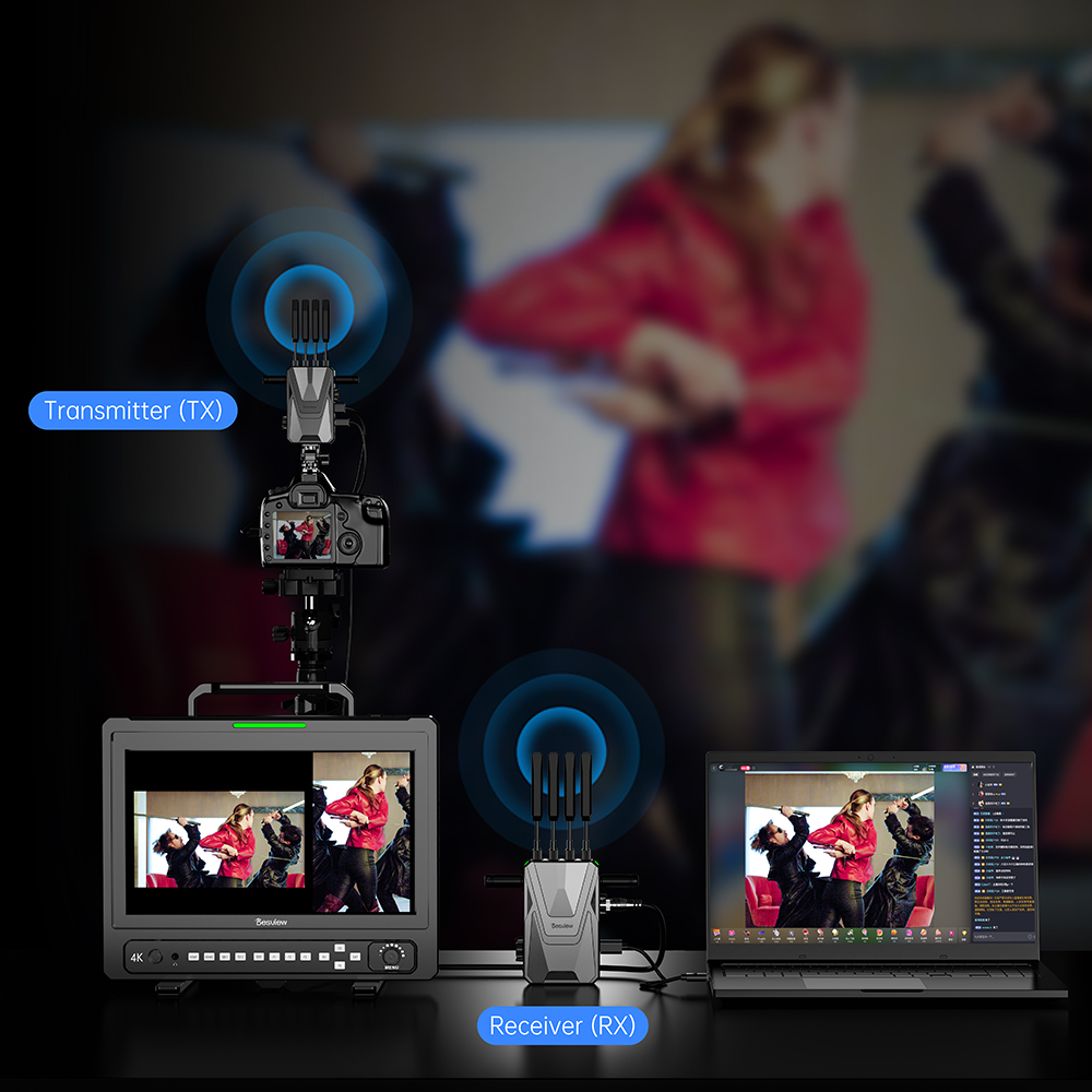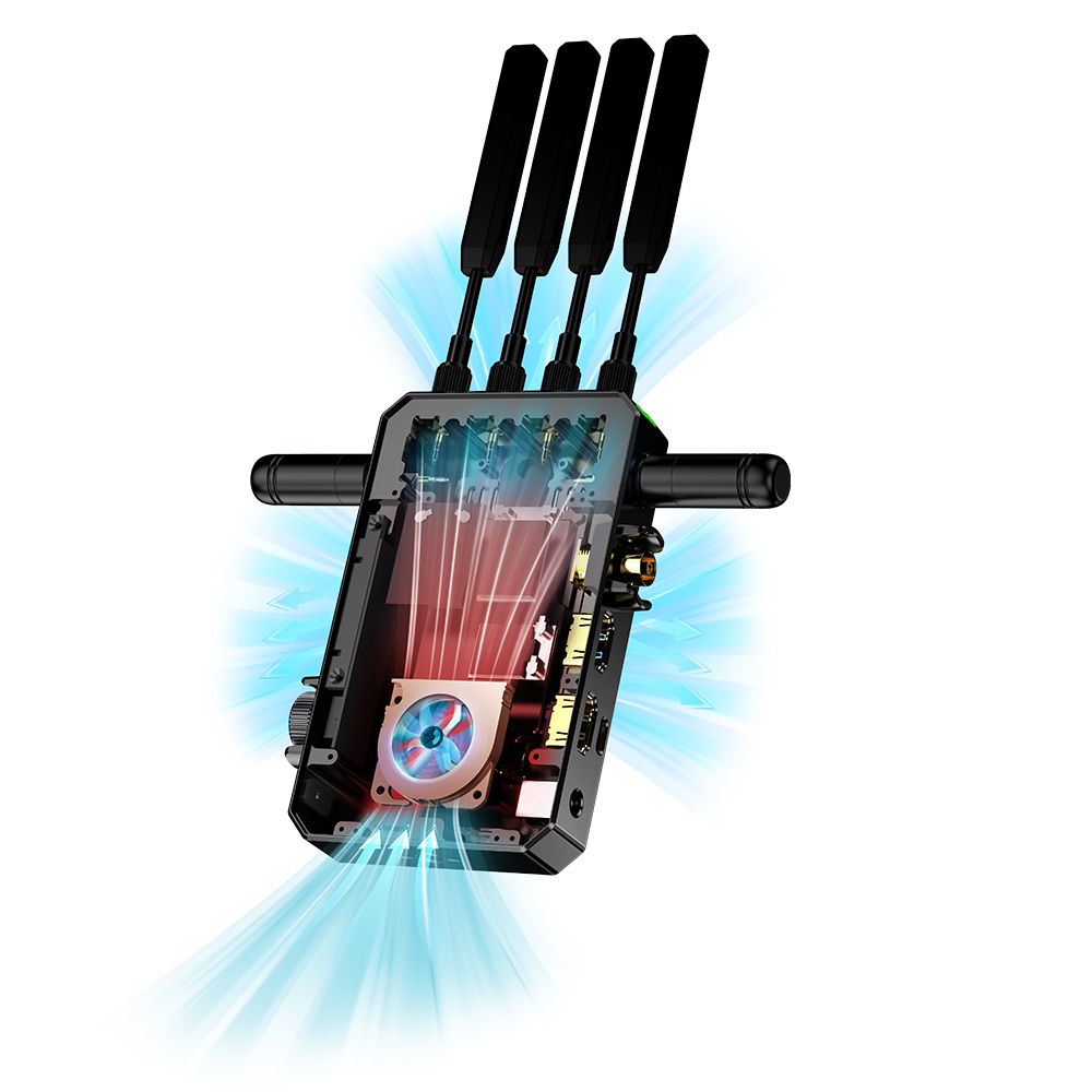 Stabile Fernabdeckung, Reichweite bis zu mehreren Kilometern Dank der Dreifachbandübertragung erreicht Atlas X eine Übertragungsreichweite von bis zu 3 km in offenen, hindernisfreien Umgebungen. Es bewältigt groß angelegte mobile Dreharbeiten mit starker Wanddurchdringungskraft und erfüllt die Anforderungen an die Überwachung am Set in jeder komplexen Umgebung.