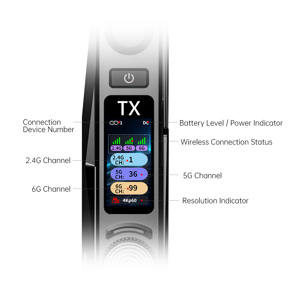| 1,05-Zoll-Vollfarb-LCD-Display Zeigt Signalstatus, Kanalband und Akkustand in Echtzeit an, alle Daten werden zur schnelleren Einstellung auf dem Bildschirm visualisiert. |