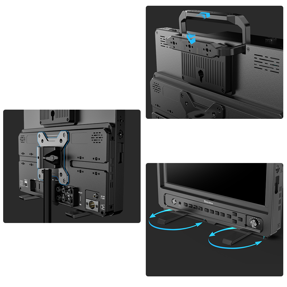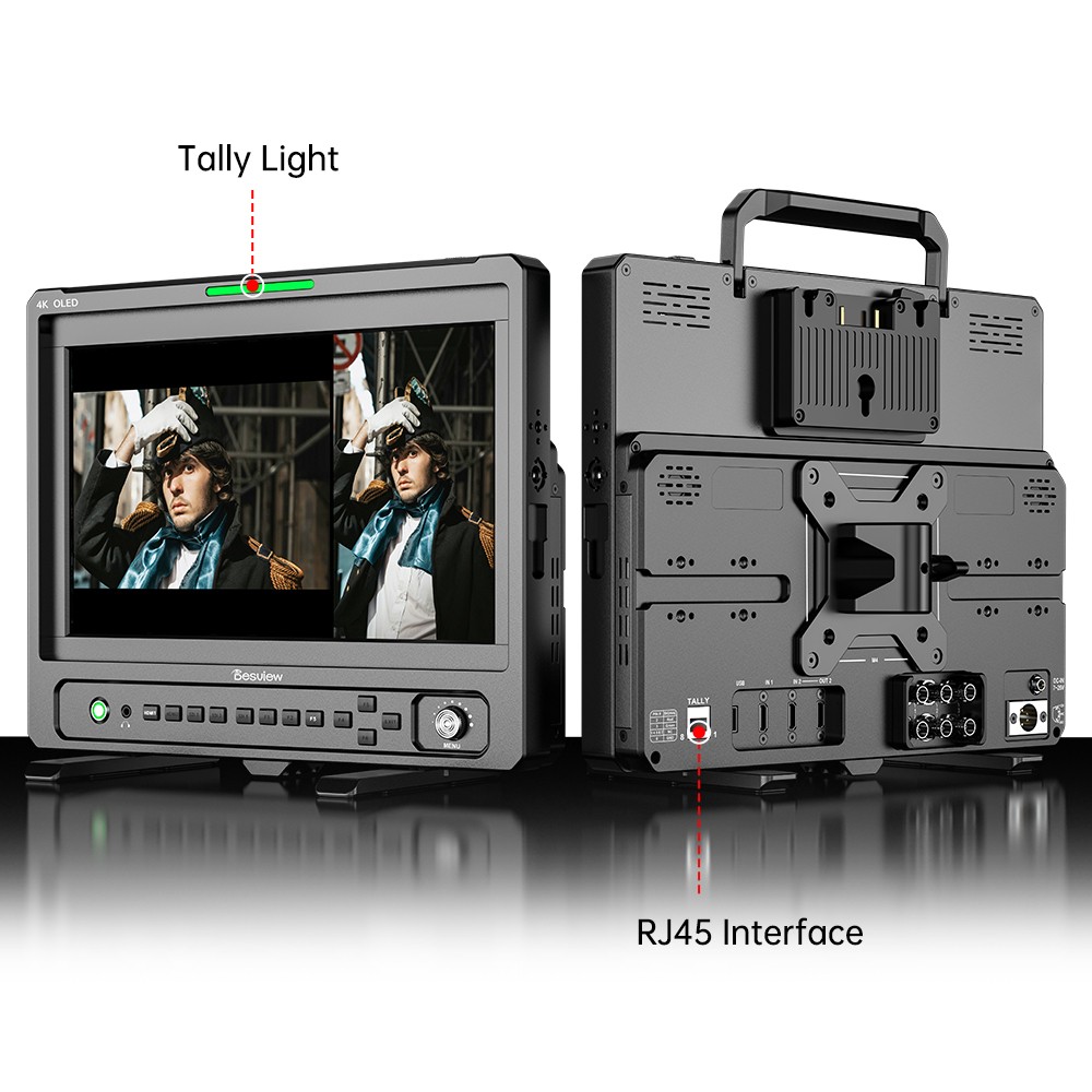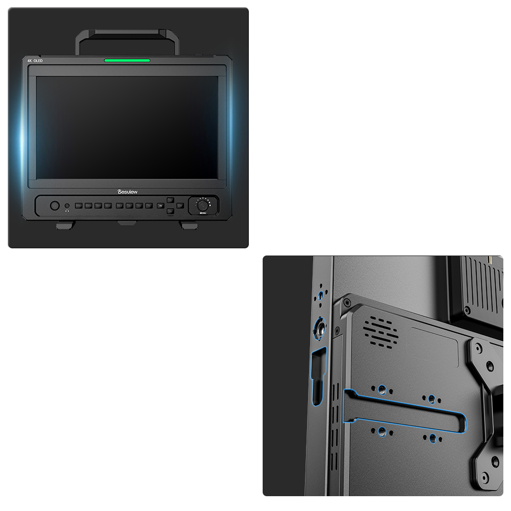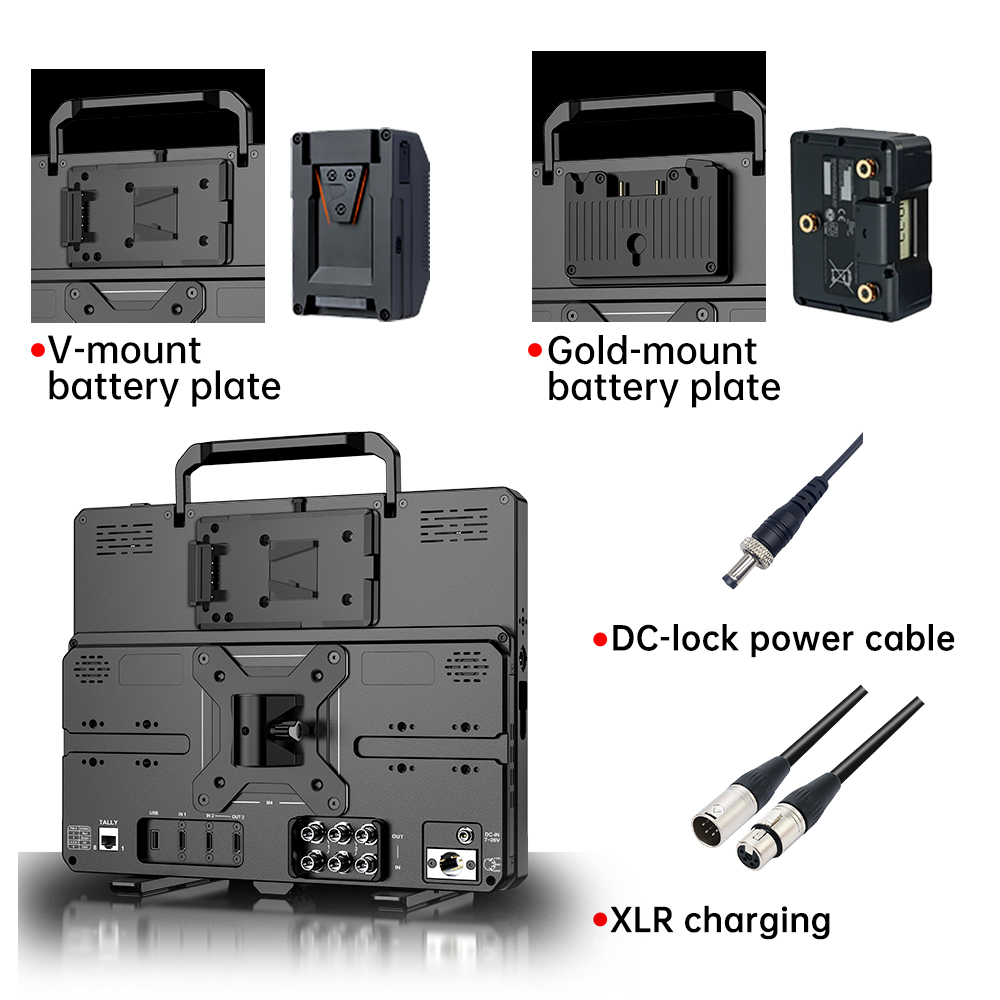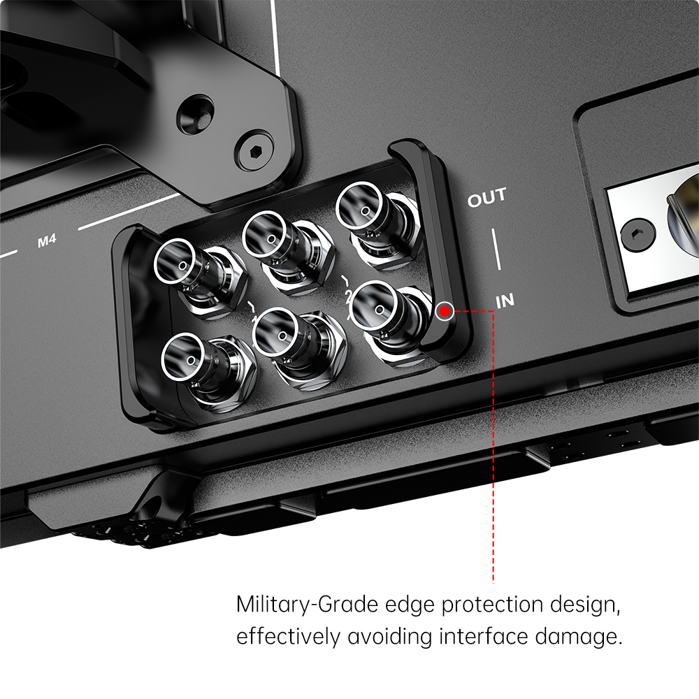 Professionelle SDI-Schnittstelle Es bietet einen dreikanaligen SDI-Eingang/Loopout, der Flexibilität und Vielfalt für Ihre Kreationen bietet, sich einfach mit mehreren Geräten verbinden lässt und unbegrenzte Möglichkeiten für Ihre Kreativität eröffnet. Das militärtaugliche Kantenschutzdesign verhindert effektiv Schäden an der Schnittstelle.
