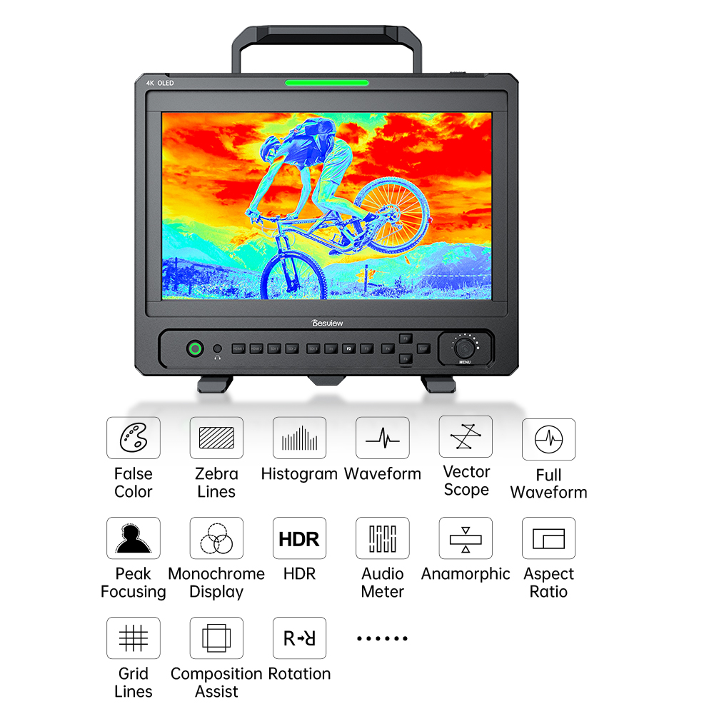 Professionelle Assistenz-Monitoring- , präzise und effizient Umfassende Überwachungs-Hilfsfunktionen sorgen dafür, dass jedes Detail des aufgenommenen Bildes präzise kontrolliert wird, sodass jedes Bild fehlerfrei aufgenommen werden kann und die Geschwindigkeit am Set sowie die endgültige Bildqualität verbessert werden. |