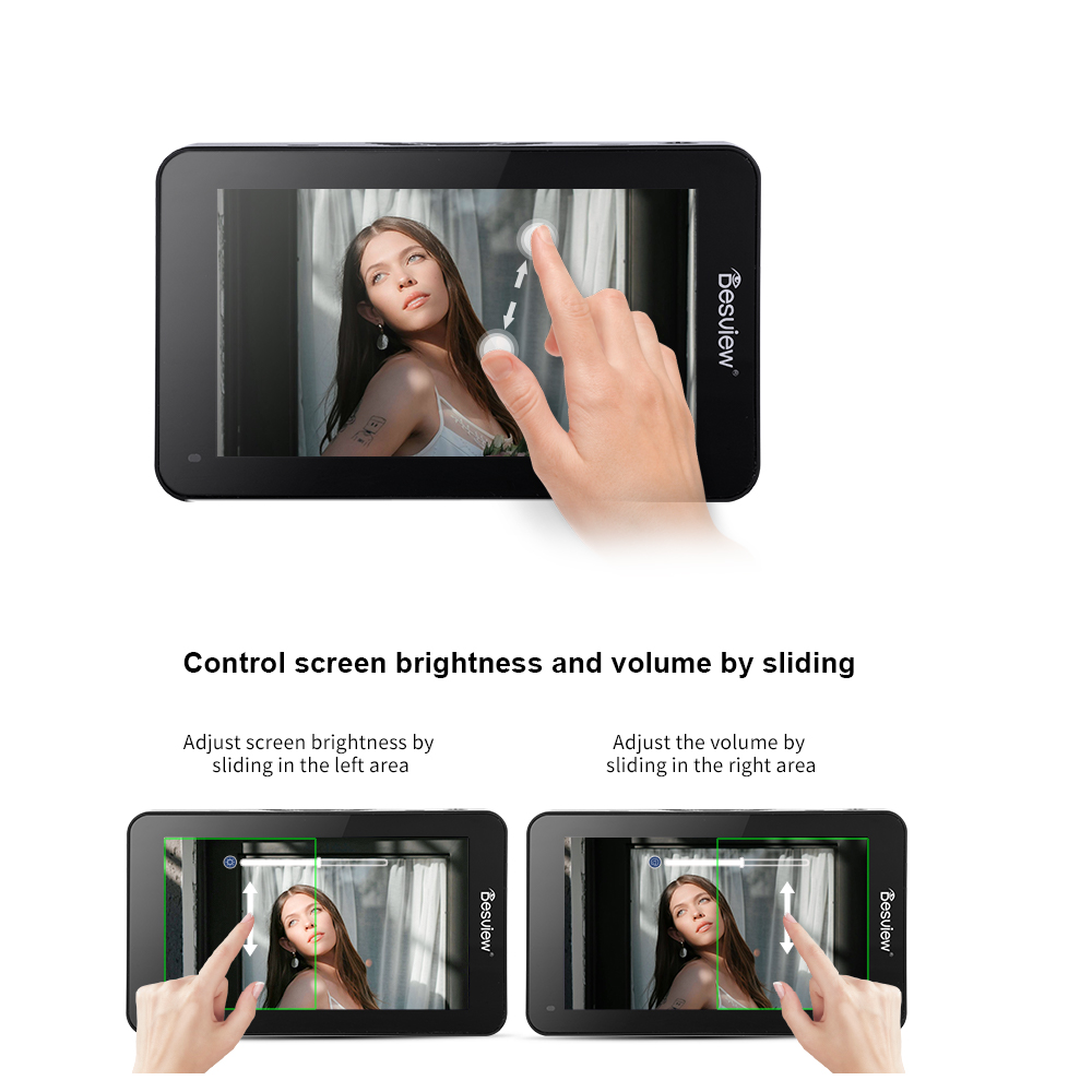 Einfach berühren Intelligente Full-Touch-Bedienung, unterstützt beliebiges Zoomen mit zwei Fingern, kann jedes Detail im Bild jederzeit bestätigen; unterstützt die gleitende Einstellung von Bildschirmhelligkeit und Lautstärke, was die Videoerstellung noch bequemer macht |