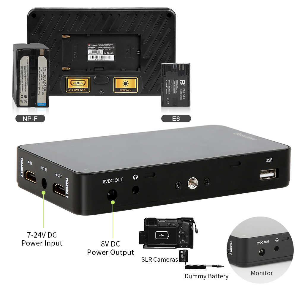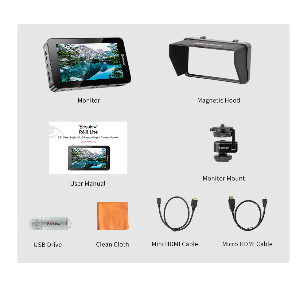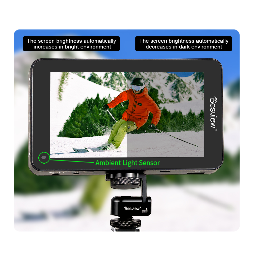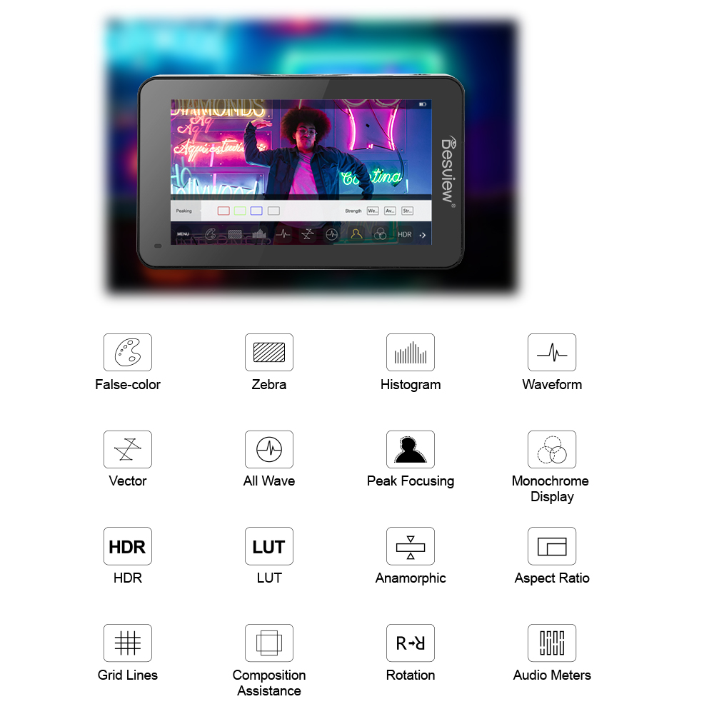 Kompakter 4K-Monitor mit hoher Helligkeit. 5.5-Zoll-Monitor mit präziser Bildanalyse. 1600 Nits hohe Helligkeit, 4Kp30 HDMI, HDR-Überwachung, benutzerdefinierte 3D-LUT, Full HD-Touchscreen-Display. Magnetische Haube, schnelle Installation und Demontage. Mit einer Bildschirmgröße von 5,5 Zoll und einem Gewicht von nur 340 g durchbricht er mühelos die Beschränkungen der Aufnahmeszene und stellt eine effiziente.