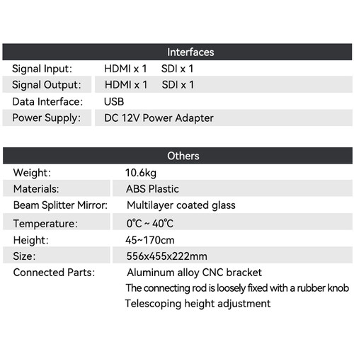 Der Desview TP200 ist ein professioneller 17-Zoll-Teleprompter mit hoher Helligkeit, einem 1000 cd/m²-Display, einem 22-Zoll-Spiegelglas und einer Auflösung von 1280 x 1024 für klare, leicht lesbare Skripte. Mit HDMI-, SDI- und USB-A-Anschlüssen, einer höhenverstellbaren Stange und einem Hartschalenkoffer, der auch als Ständer verwendet werden kann, ist dieser Teleprompter ideal für Studio- und Außenproduktionen. Im Lieferumfang enthalten sind Prompter-Software, eine Bluetooth-Fernbedienung und eine Sonnenblende.