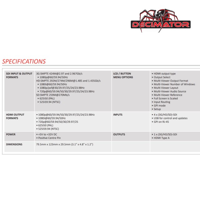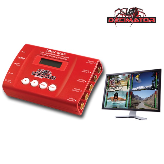 4 x (3G/HD/SD)-SDI-zu-HDMI-Konverter mit 1 bis 4 Multibetrachtern, benutzerdefinierten Layouts und 8-Kanal-Audiometern