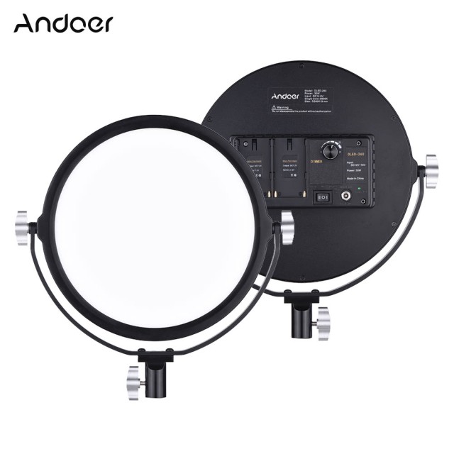 Tragbare Rundleuchte für das Studio mit der Möglichkeit der Stromversorgung durch NP-F-Batterien oder Netzstrom.