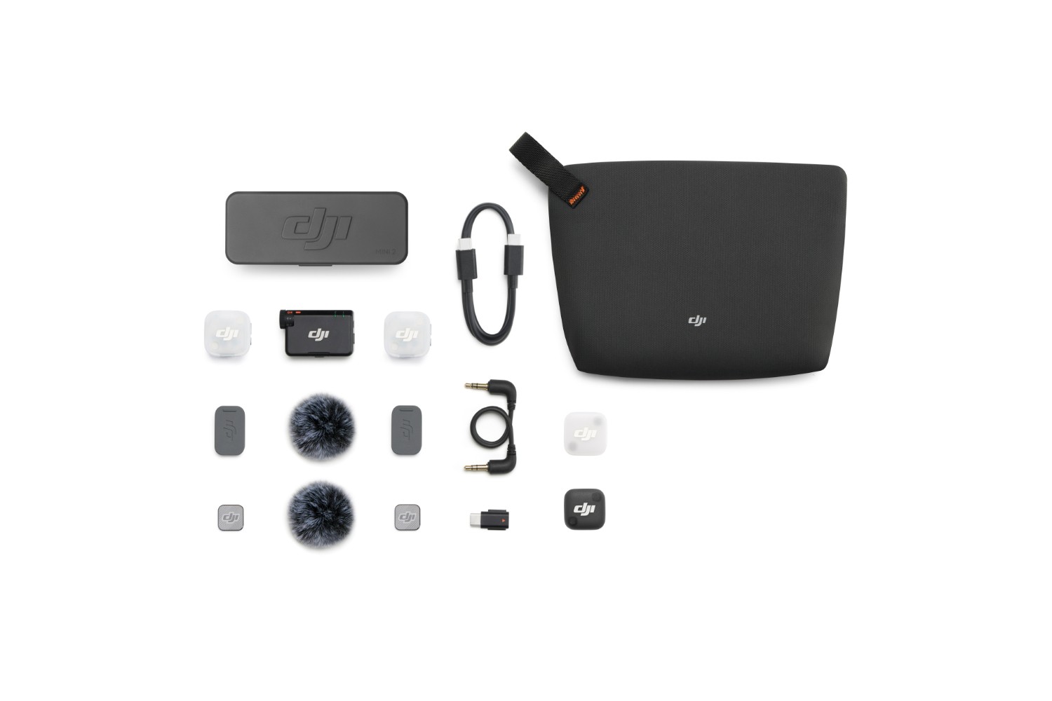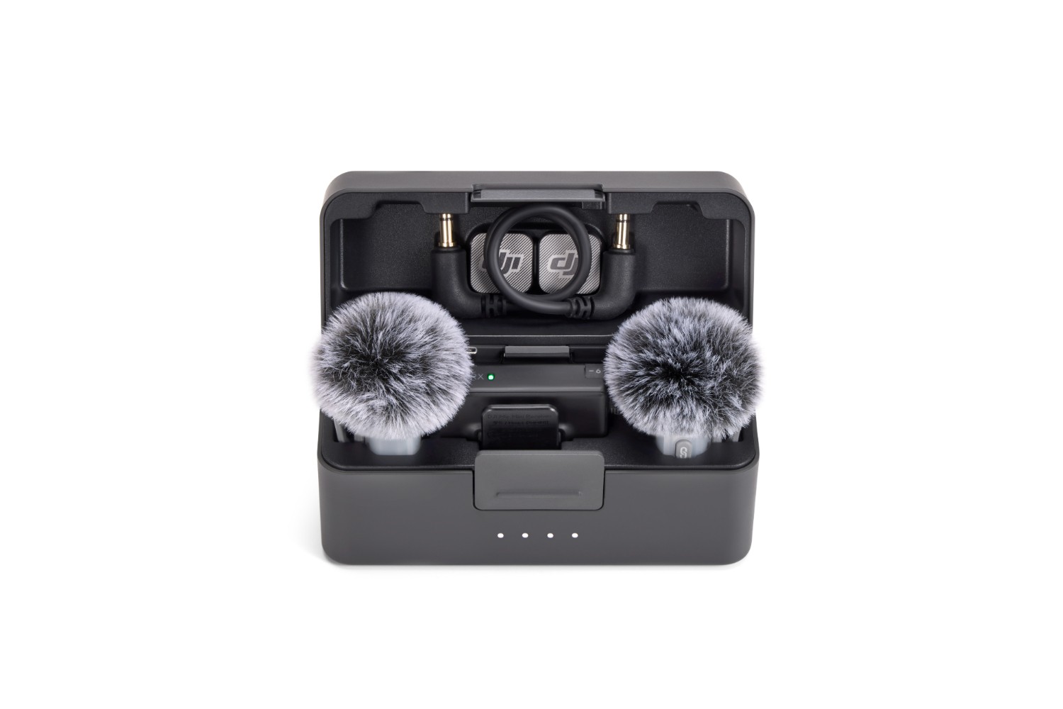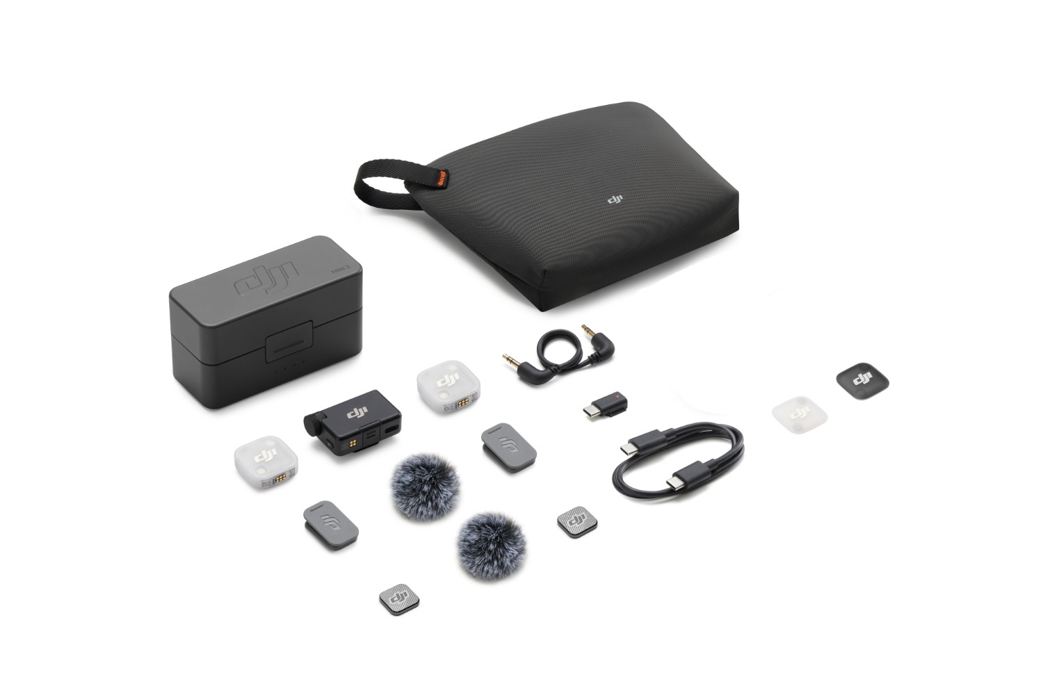 Das DJI Mic Mini 2 bietet acht farbige magnetische Frontabdeckungen und fünf farbige Windschutzkappen, die Sie auf jedes Outfit abstimmen können. Ebenfalls erhältlich sind der DJI Mic Series Mobile Receiver und der DJI Mic Series Camera Adapter.