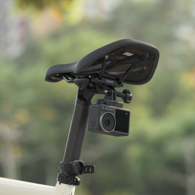 Nehmen Sie dynamische Trail-Aufnahmen mit der DJI Osmo Action Bike Seat Rail Mount auf, die dafür entwickelt wurde, Ihre Osmo Action-Kamera sicher an der Unterseite Ihres Fahrradsattels zu befestigen.