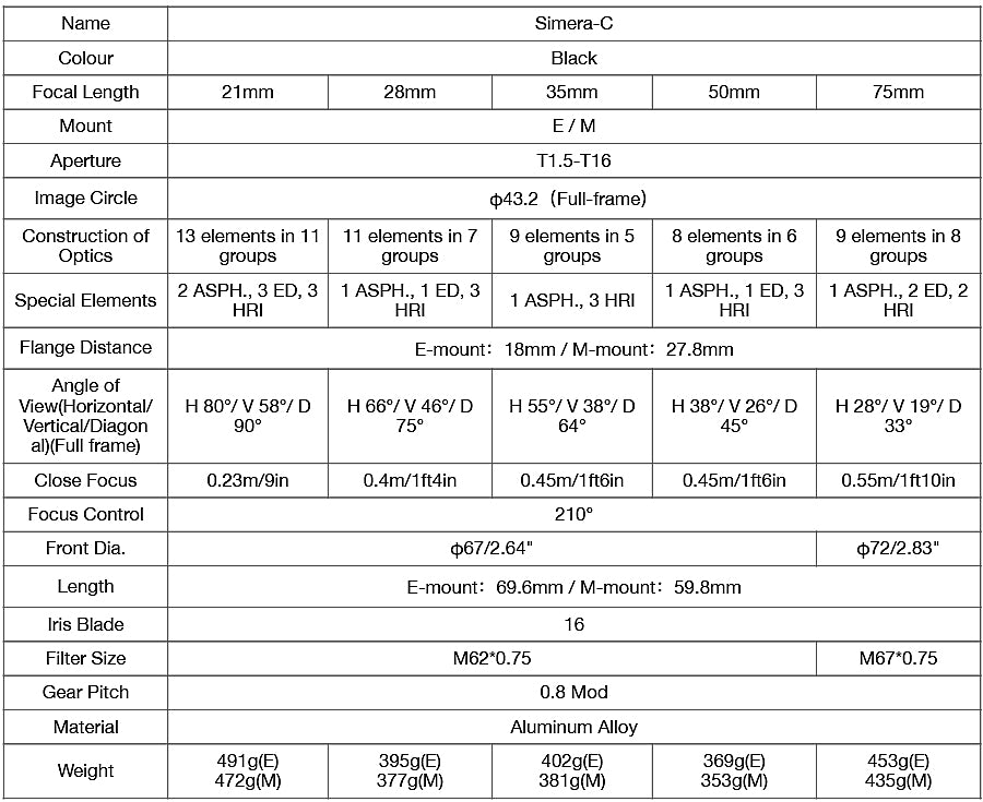 Jedes Simera-C Objektiv wird einer strengen Qualitätskontrolle unterzogen und in einem kombinierten Fräsverfahren mit mikrometergenauer Präzision gefertigt. Dies gewährleistet eine außergewöhnliche Fertigungsgenauigkeit für jedes Element und reduziert optische Aberrationen wie chromatische Aberration und Astigmatismus. Die gesamte Serie zeichnet sich durch eine gleichbleibende Bildqualität aus, die eine einheitliche Schärfe von der Mitte bis zum Rand liefert, egal ob es sich um Weitwinkel- oder Teleaufnahmen handelt, und erfüllt damit die Anforderungen der High-End-Produktion.