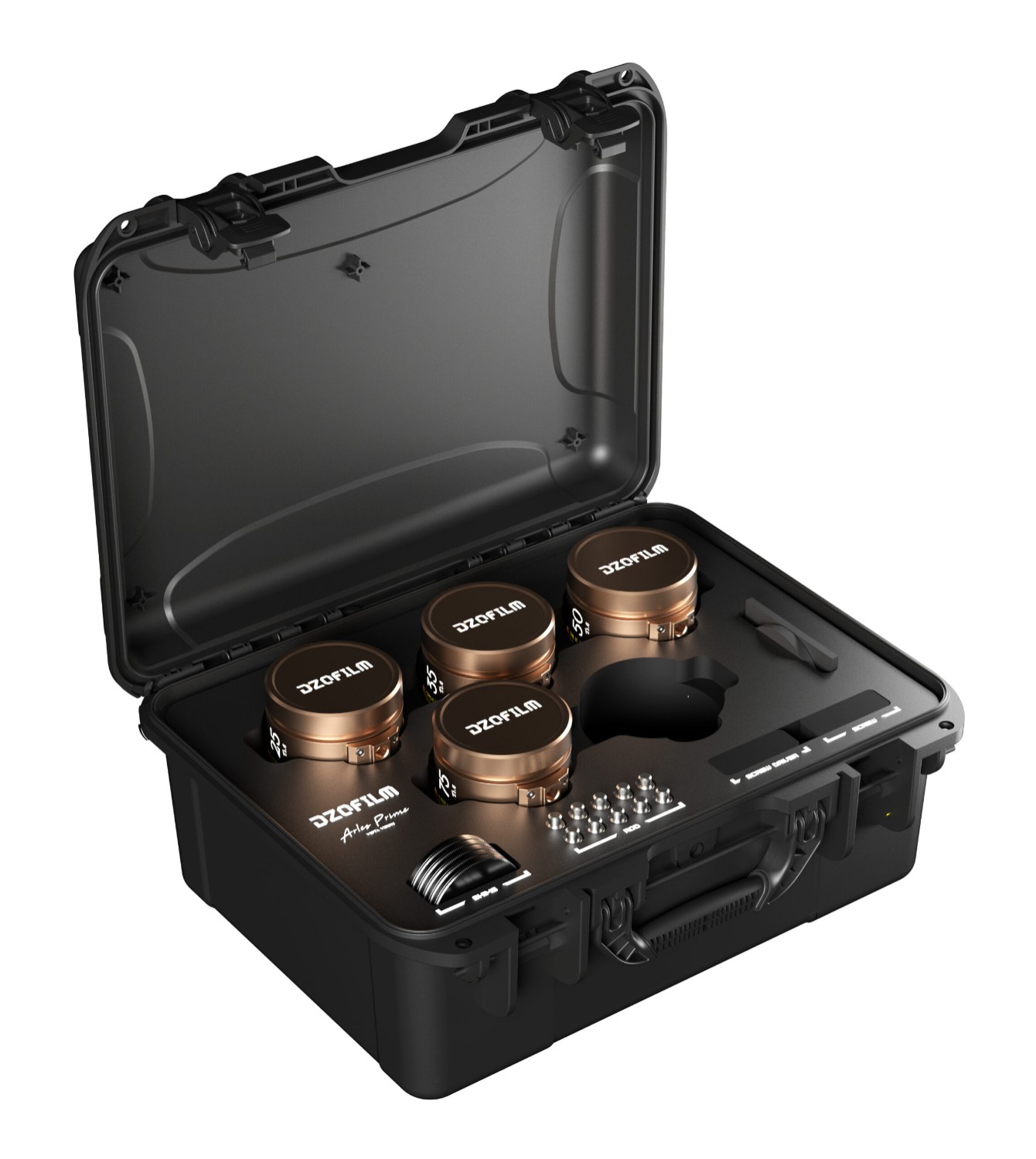 Das DZOFILM Arles Lustre T1.6 FF/VV Cinema Prime 4-Linsen-Kit (ARRI PL) ist ein professionelles Vollformat-/Vista Vision-Kinobjektivset mit Brennweiten von 25 mm, 35 mm, 50 mm und 75 mm und einer lichtstarken Blende von T1.6. Dieses Kit wurde für hochwertige Film- und Werbeproduktionen entwickelt und bietet eine konsistente Farbwiedergabe, ein gleichmäßiges Bokeh, eine robuste Metallkonstruktion und eine branchenübliche 0,8-MOD-Verzahnung, alles verpackt in einem hochwertigen goldenen Schutzkoffer.