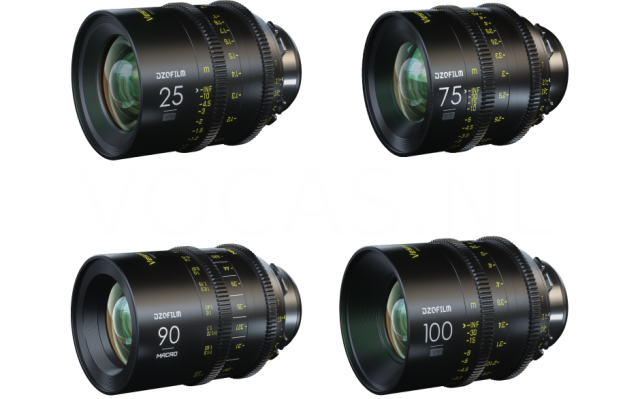 DZOFILM Vespid 4 Objektivsatz (25mm, 75mm, 100mm T2.1, Makro 90mm T2.8) - Imperial (PL Mount). Bitte beachten Sie: Ein Werkzeugsatz für EF-Mount-Objektive wird mit diesem Kit mitgeliefert, zusammen mit Konvertierungsadaptern für EF-Mount-Benutzer.