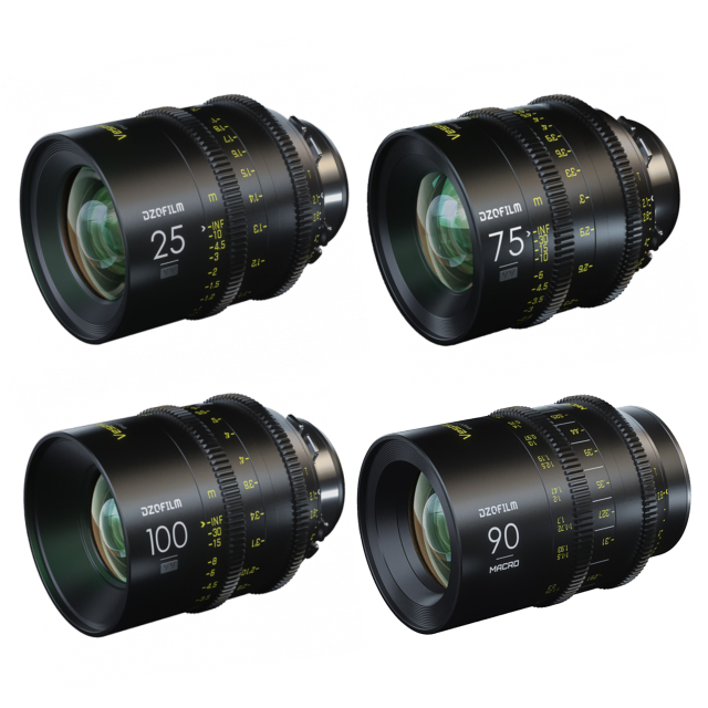 DZOFILM Vespid 4 Objektivsatz (25mm, 75mm, 100mm T2.1, Makro 90mm T2.8) - Imperial (Canon EF oder PL Mount).