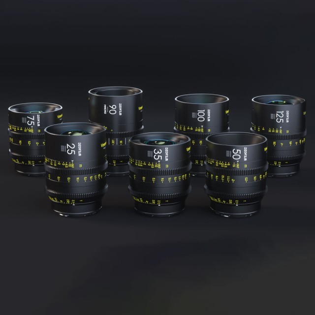 Der Satz von 7 manuellen Objektiven der DZOFilm VESPID-Serie mit (austauschbarem) EF-Anschluss umfasst Modelle mit Brennweiten von 25, 35, 50, 75, 100, 125 (T2,1) und 90mm Makro (T2,8). Die Objektive decken Sensoren bis zur FF-Größe (46,5 mm kreisförmige Projektion) ab und sind dennoch leicht und kompakt für Aufnahmen aus der Hand, mit Stabilisatoren oder Drohnen. Das Design der Objektive ist auf Videoaufnahmen abgestimmt: Es garantiert ein minimales "Atmen", die Drehung der Objektivfront und die Veränderung ihrer Größe während der Fokussierung werden vermieden, und die gleiche Position der Fokus- und Blendenringe gewährleistet einen einfachen Objektivwechsel im Rig. Das Set enthält außerdem einen stabilen Tragekoffer.