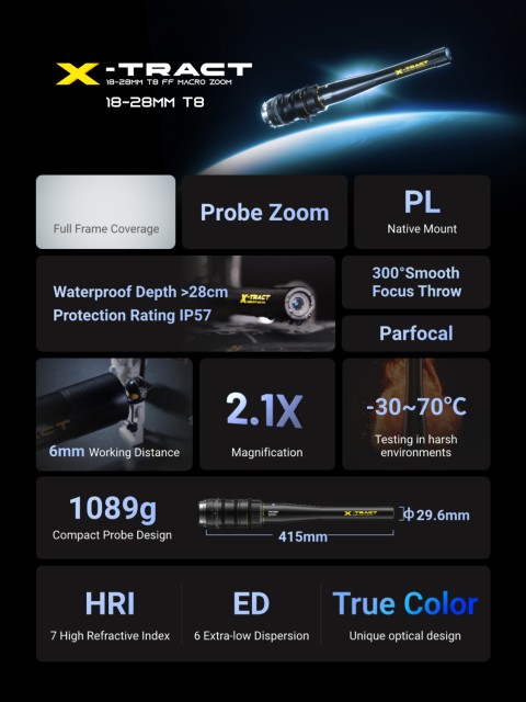 Das neue DZOFILM X-tract 18-28mm Metric T8 PL mit Hartschalenkoffer. Zoom-Funktion Eine neue Form/Kategorie von Makroaufnahmen - eine Zoom-Sonde…