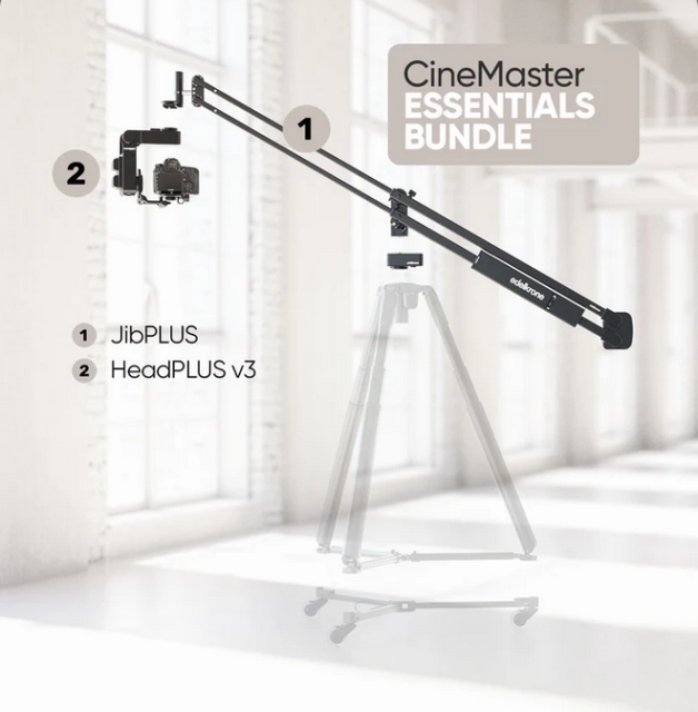 Das EdelKrone CineMaster Bundle - Essentials ist eine umfassende Lösung für Videoprofis mit dem JibPLUS und dem HeadPLUS v3. Dieses Bundle bietet ultra-glatte, kinoreife Bewegungen mit fortschrittlichen Schwenk- und Steuerungsfunktionen - perfekt für dynamische und fesselnde Aufnahmen.