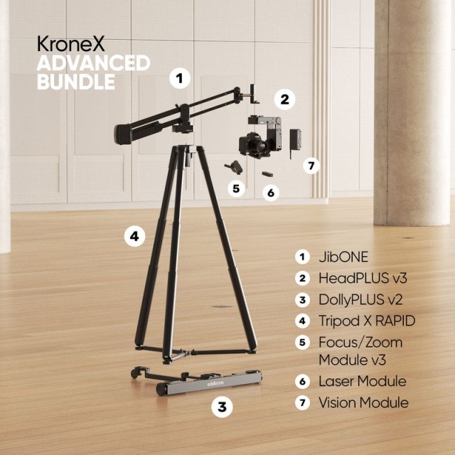 Edelkrone KroneX Bundle - Advanced: Beinhaltet HeadPLUS v3, JibONE v3, DollyPLUS v2, Stativ X RAPID, Focus/Zoom Modul v3, Laser Modul und Vision Modul für präzise Kamerafahrten und dynamische Aufnahmen.