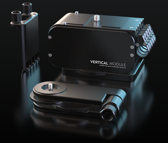 - Ganz mechanisch - Das Vertikalmodul gleicht die Schwerkraft aus und hält das System mit Hilfe von Federn mit konstanter Kraft in jedem Winkel schwerelos. Keine zusätzlichen Batterien erforderlich!