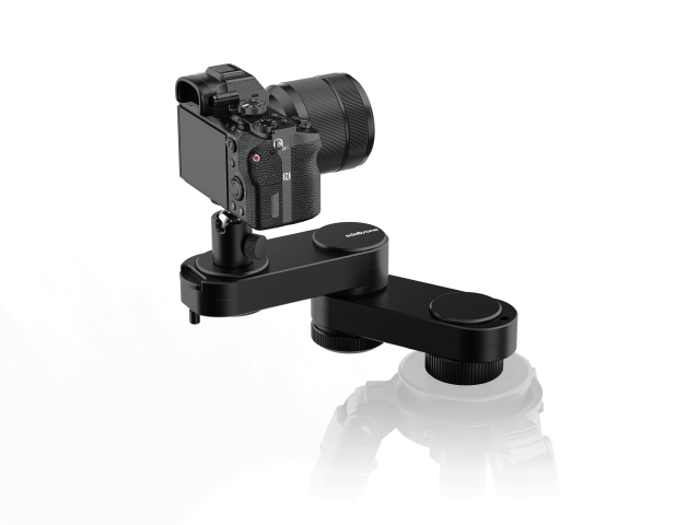 Schienenloser, tragbarer Slider, der der Kamera die 4-fache Bewegung ihrer Größe verleiht. Keine Batterien oder Ladegeräte erforderlich; eine komplett mechanische Lösung dank des einzigartigen Doppelarm-Designs.