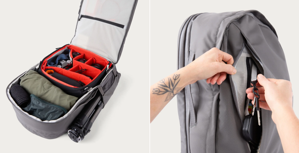 Komfort steht im Vordergrund dank S-förmiger Schultergurte, einer konturierten Rückwand mit geformten Schaumstoff-Luftkanälen, verstellbaren Brustgurten und einem Spacer-Mesh-Design zur Schweißreduzierung. Der Rucksack verfügt zudem über reisefreundliche Funktionen wie eine versteckte RFID-blockierende Tasche, eine Gepäckdurchführung und seitliche Tragegriffe, wodurch er als Handgepäck geeignet ist.