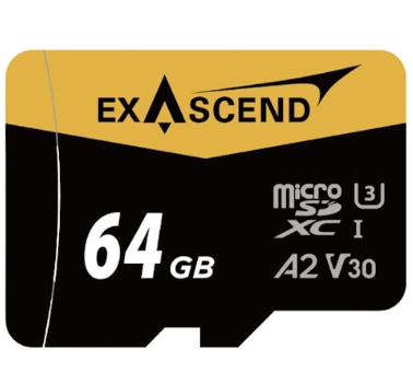 Die Exascend EX64GUSDU1 Catalyst 64 GB microSDXC UHS-I (V30/U3) Karte bietet 170 MB/s Lese- und 140 MB/s Schreibgeschwindigkeit für 4K-RAW-Videos und Actionaufnahmen. Robust (-25 °C bis 85 °C), 3D TLC, A2-fähig, gewährleistet sie nahtlose Apps und Hochgeschwindigkeitsübertragungen in extremen Umgebungen.