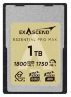 Die Exascend EXPC4EB512GB Essential Pro CFexpress 4.0 Typ B 512 GB-Karte bietet Lesegeschwindigkeiten von 3750 MB/s und Schreibgeschwindigkeiten von 3350 MB/s für 8K/12K-Videos mit 120 fps. VPG-400-zertifiziert mit adaptiver Temperaturregelung, 300 TB TBW-Lebensdauer und lebenslanger Garantie mit Datenwiederherstellung.