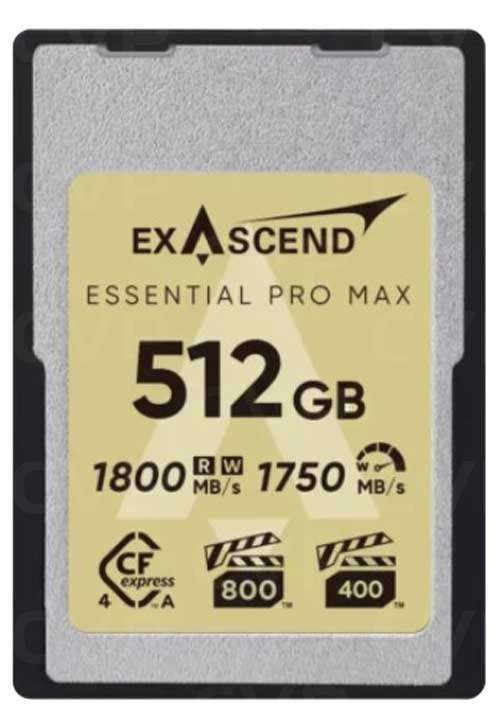 Die Speicherkarte Exascend Essential Pro Max CFexpress Typ A 4.0 512 GB wurde für professionelle Kreative entwickelt, die schnelle, stabile und zuverlässige Leistung für hochauflösende Videos und Fotos benötigen. Basierend auf dem CFexpress 4.0-Standard der nächsten Generation mit PCIe Gen4 x1 bietet sie Lese- und Schreibgeschwindigkeiten von bis zu 1.800 MB/s, VPG400- und VPG800-Zertifizierung sowie ein fortschrittliches Wärmemanagement, um auch bei langen Aufnahmen eine reibungslose, unterbrechungsfreie 8K- und 12K-Aufzeichnung zu gewährleisten.