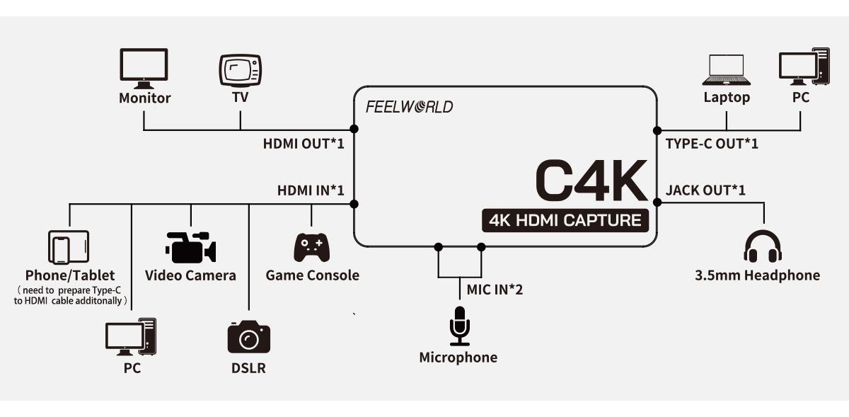FEEWORLD C4K Video Capture 4K HDMI 60Hz Ein- und Ausgang USB-C Plug-and-Play für