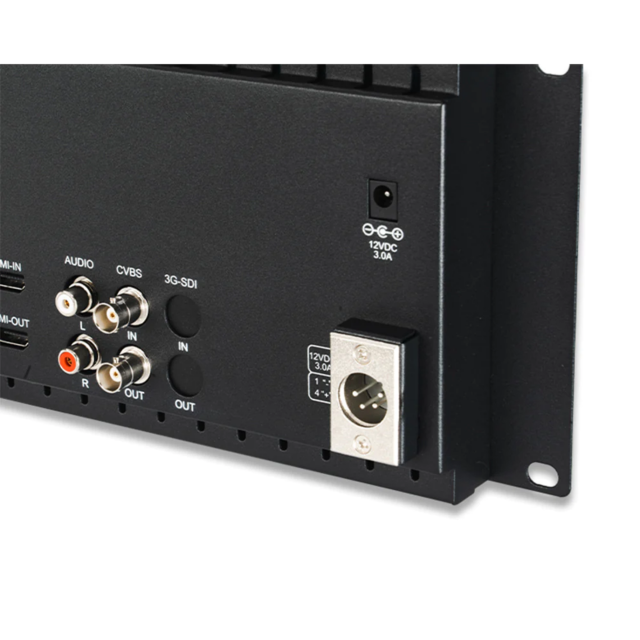 Ultraflaches Metallgehäuse, robust und langlebig. Die 3RU-Einbaugröße kann leicht in TV-Wänden oder Übertragungswagen usw. installiert werden.
