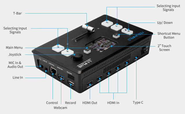 Mit dem 5-Richtungs-Joystick auf dem Bedienfeld des L1 PLUS lassen sich PTZ-, PIP- und Logo-Overlay-Funktionen einfach steuern.