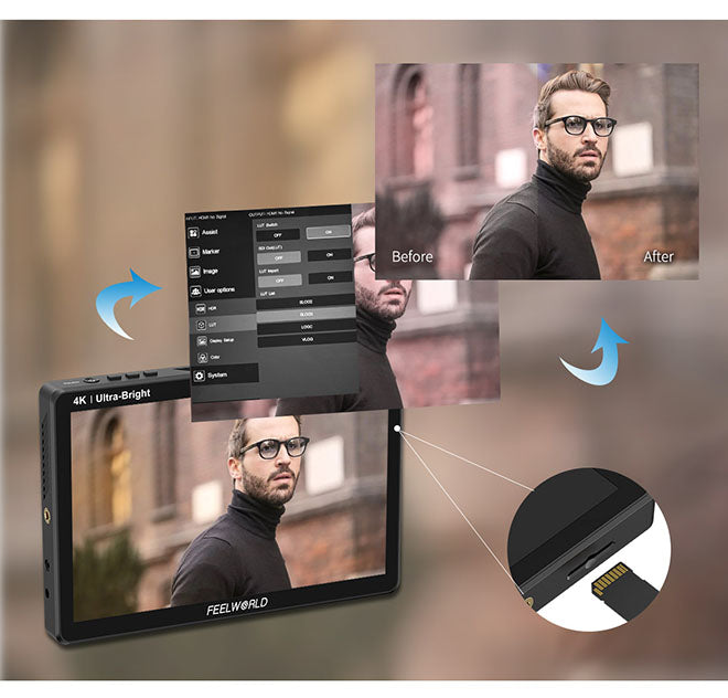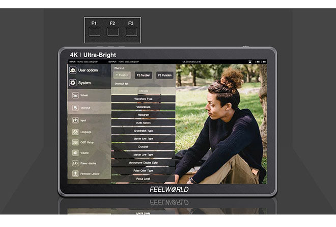 FEELWORLD LUT11H ist ein professioneller 10,1-Zoll-Kameramonitor mit Touchscreen und einer Helligkeit von 2000nit. Unterstützt bis zu 4K@60Hz HDMI-Signaleingang und -ausgang. Bietet eine Reihe von Überwachungs- und Framing-Tools mit neuem Menü-Layout, verschiedene numerische Parameter sind klar auf einen Blick, so dass die Bedienung einfacher. Auf der Rückseite des LUT11H befindet sich ein externes Installations- und Stromversorgungs-Kit F970, mit dem drahtlose Übertragungen, LED-Leuchten usw. installiert werden können. Es kombiniert den Monitor mit drahtloser Übertragung, um unnötige Kabel loszuwerden, was perfekt für die Überwachung des Regisseurs ist, 1. Die Dual-Batterieplatten Design kann zwei F970 Batterien zur gleichen Zeit für eine lange Stromversorgung auch im Freien zu installieren. Ideal für Außenaufnahmen der Crew, Überwachung und Postproduktion.