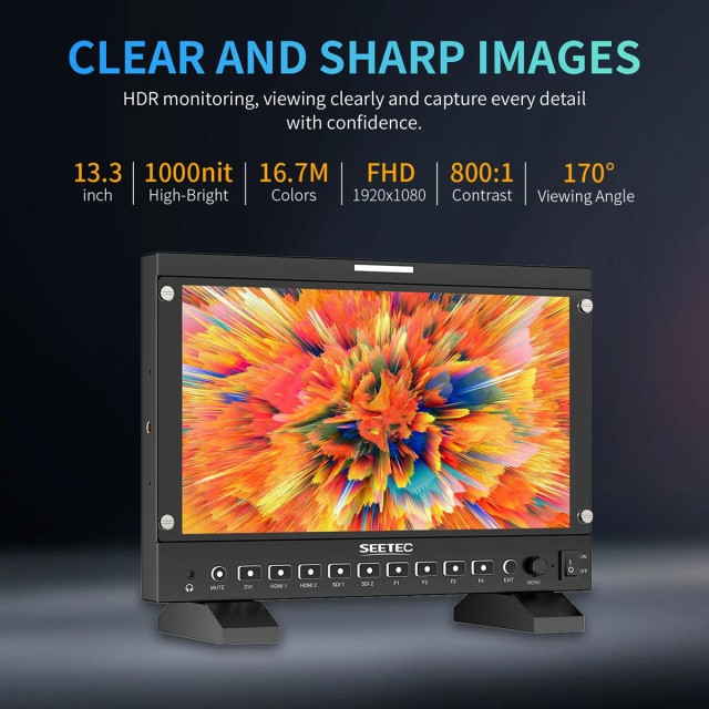 Der P133 PRO ist ein hochwertiger Monitor, der vielseitig genug ist, um im Rundfunkstudio, bei Live-Produktionen oder bei Außenaufnahmen eingesetzt zu werden. Der P133 PRO arbeitet mit allen SD/HD/3D-SDI- und bis zu 4K-HDMI@60Hz-Videoformaten und verfügt über einen XLR- und einen DC IN-Stromeingang sowie eine V-Mount-Akkuplatte, so dass Sie ihn mit Batterien verwenden oder an eine Gleichstromversorgung anschließen können. Eine Reihe von Kamera-Hilfsfunktionen kann dem Fotografen helfen, vor Ort zu komponieren und Zeit für die Nachbearbeitung zu sparen. Dieser Monitor kann mit einem VESA-Ständer zusätzlich zu einem Tischständer an der Wand montiert werden.