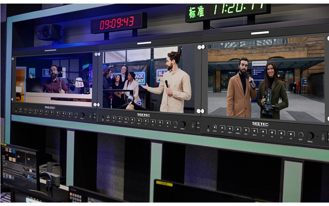 Die Rückseite des Monitors ist mit 75x75mm VESA-Halterungen ausgestattet, so dass Sie ihn in ein Rack einbauen oder an die Wand hängen können. Ideal für Rundfunkstudios oder Live-Produktionen.