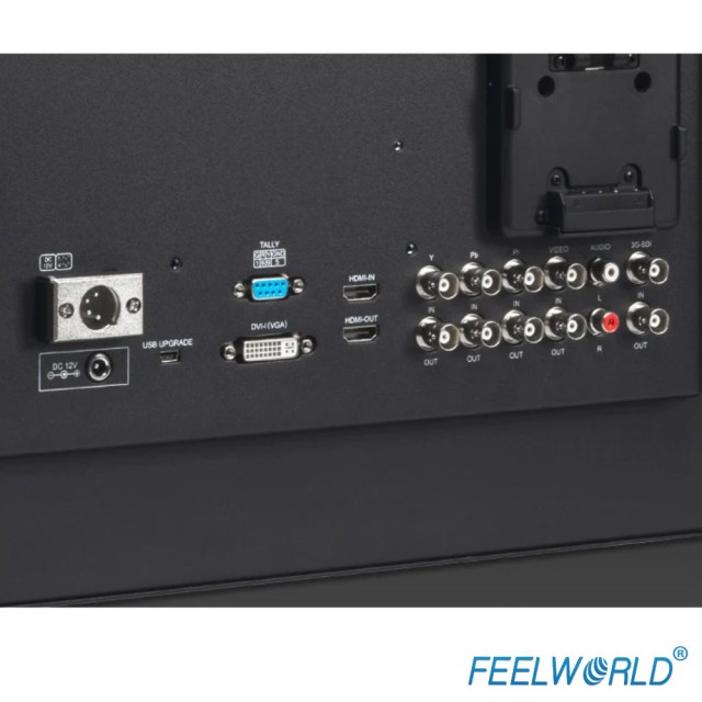 Der Monitor ist mit 3G-SDI-, HDMI-, YPbPr-, Video-, DVI- und Audio-L/R-Schnittstellen ausgestattet, die alle Anforderungen an HD-, SD- und analoge Videosignaleingänge und -anzeigen erfüllen.