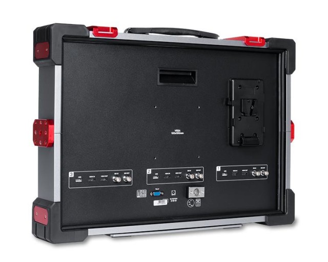 Der Monitor wird über DC 12–24 V, XLR oder V-Mount-Batterieplatte mit Strom versorgt und verfügt über eine 100 x 100 mm VESA-Halterung für vielseitige Installationsmöglichkeiten. Er ist robust und professionell und eignet sich für Broadcast-, Film- und Studioproduktionen.