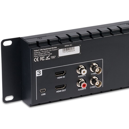 Der Feelworld T51 PLUS-H bietet drei 5,5-Zoll-Full-HD-IPS-Displays (1920 x 1080) in einem schlanken 2-HE-Rackgehäuse und ist damit eine kompakte und dennoch leistungsstarke Überwachungslösung für Multi-Kamera-Setups. Jedes Display verfügt über eine Helligkeit von 400 cd/m², einen Kontrast von 1000:1 und einen Betrachtungswinkel von 170° für eine klare und präzise Darstellung.