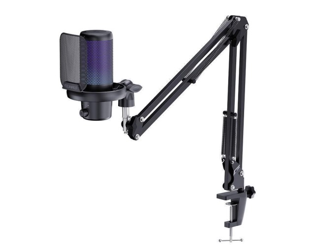 Das Feelworld VM1-AS ist ein Plug-and-Play-USB-Kondensatormikrofon, das für Streaming, Gaming und Podcasting entwickelt wurde. Es verfügt über eine Nierencharakteristik für klaren Klang, eine spezielle Taste zum Stummschalten/Rauschunterdrückung und eine anpassbare Multi-Mode-RGB-Beleuchtung, um Ihr Setup zu verbessern.
