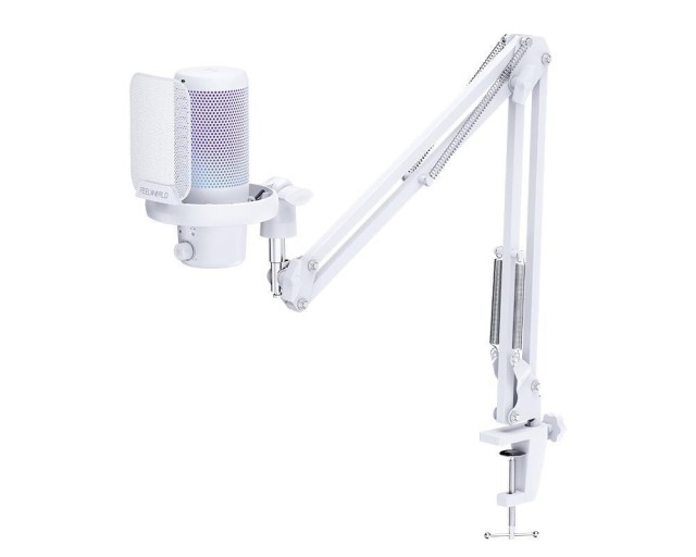 Der leicht zu positionierende Metall-Auslegerarm lässt sich an verschiedene Setups anpassen. Sie können das Mikrofon bei Gebrauch schnell an Ihren Mund heranziehen oder es platzsparend wegklappen.
