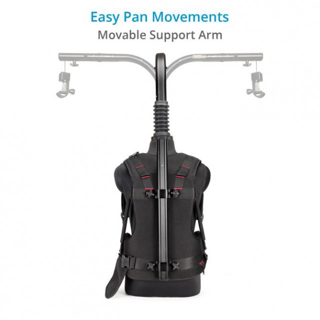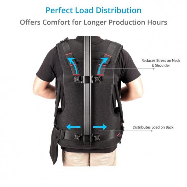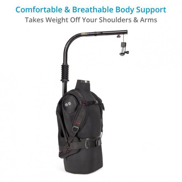 Die Flowline 300N Professional Ergonomic Camera Support Vest von FLYCAM ist eine Weste, die am Körper getragen werden kann, um Kameraausrüstungen mit einem Gewicht von 11 bis 17,6 kg zu tragen. Das System nutzt ein Aufhängungskabel, um das Gewicht des Gimbal-Rigs zu stützen. Dadurch werden Ihre Schultern, Ihr Nacken und Ihre Armmuskeln entlastet und auf Ihren gesamten Oberkörper verteilt.