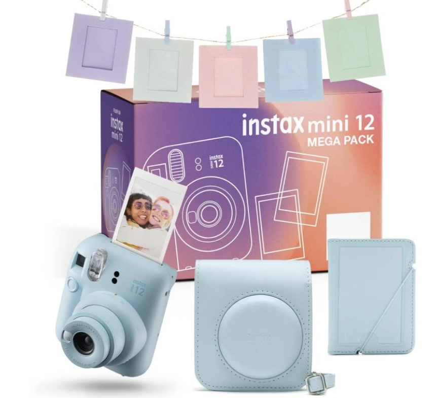 Mit Abmessungen von 104 × 66,6 × 122 mm und einem Gewicht von 306 g ist die Mini 12 kompakt und leicht, sodass sie überallhin mitgenommen werden kann. Das Mega Pack enthält eine passende Schutzhülle mit Trageriemen, ein Fotoalbum mit 29 Fächern, eine „Pin-Display“ zur Präsentation von Fotos und eine Geschenkbox, sodass es sich ideal als Geschenk oder Starter-Kit für Liebhaber der Sofortbildfotografie eignet. (Instax Mini-Film ist separat erhältlich.)