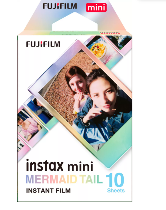 Der Fujifilm Instax Mini Film – Mermaid Tail ist ein Sofortbildfilm in Sonderausgabe mit einem farbenfrohen Rahmen-Design, das von den Farben der Meerjungfrauen inspiriert ist. Er liefert lebendige Fotos mit natürlichen Hauttönen und einem glänzenden Finish im klassischen Instax Mini-Format.